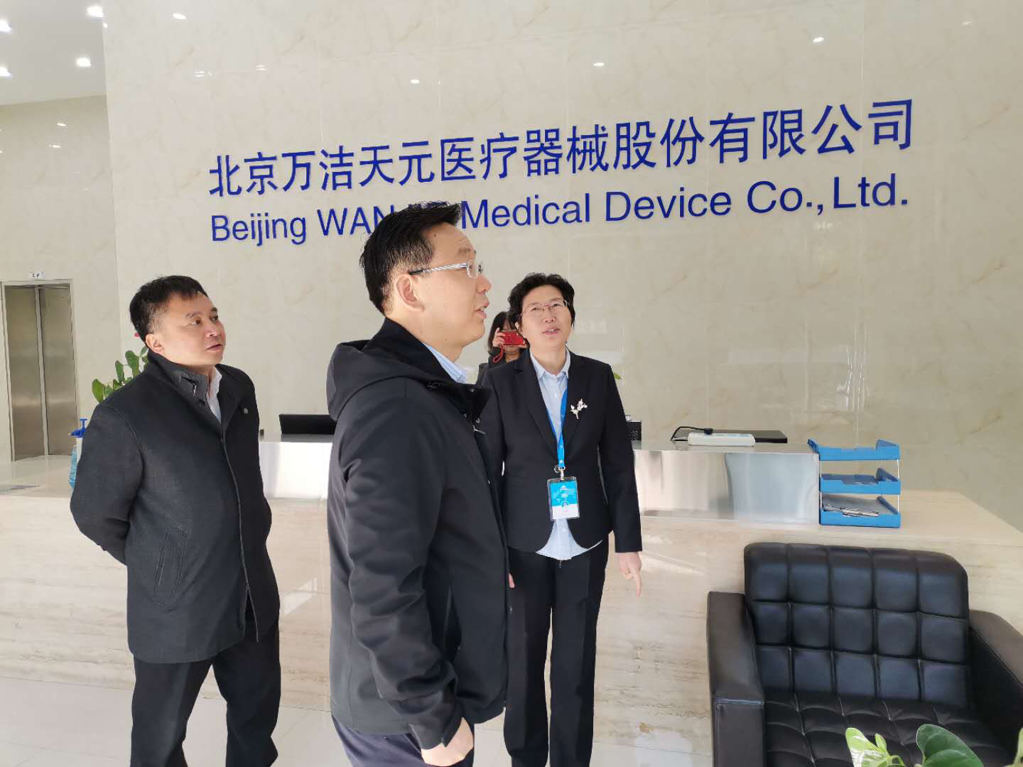 10月15日上午9:30,大興區(qū)委常委、副區(qū)長高念東蒞臨萬潔天元視察指導(dǎo)工作,政府辦副主任李小凱,大興生物醫(yī)藥基地副總經(jīng)理張龍,中關(guān)村醫(yī)療器械園總經(jīng)理徐景泉,萬潔天元董事長張梅,運營總監(jiān)崔靜等全程陪同。