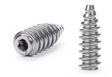 中空型不可吸收韌帶固定螺釘,其尖端呈圓錐形,可使骨道內(nèi)固定更牢靠。螺紋鈍而深,固定牢固而不傷及韌帶等組織。